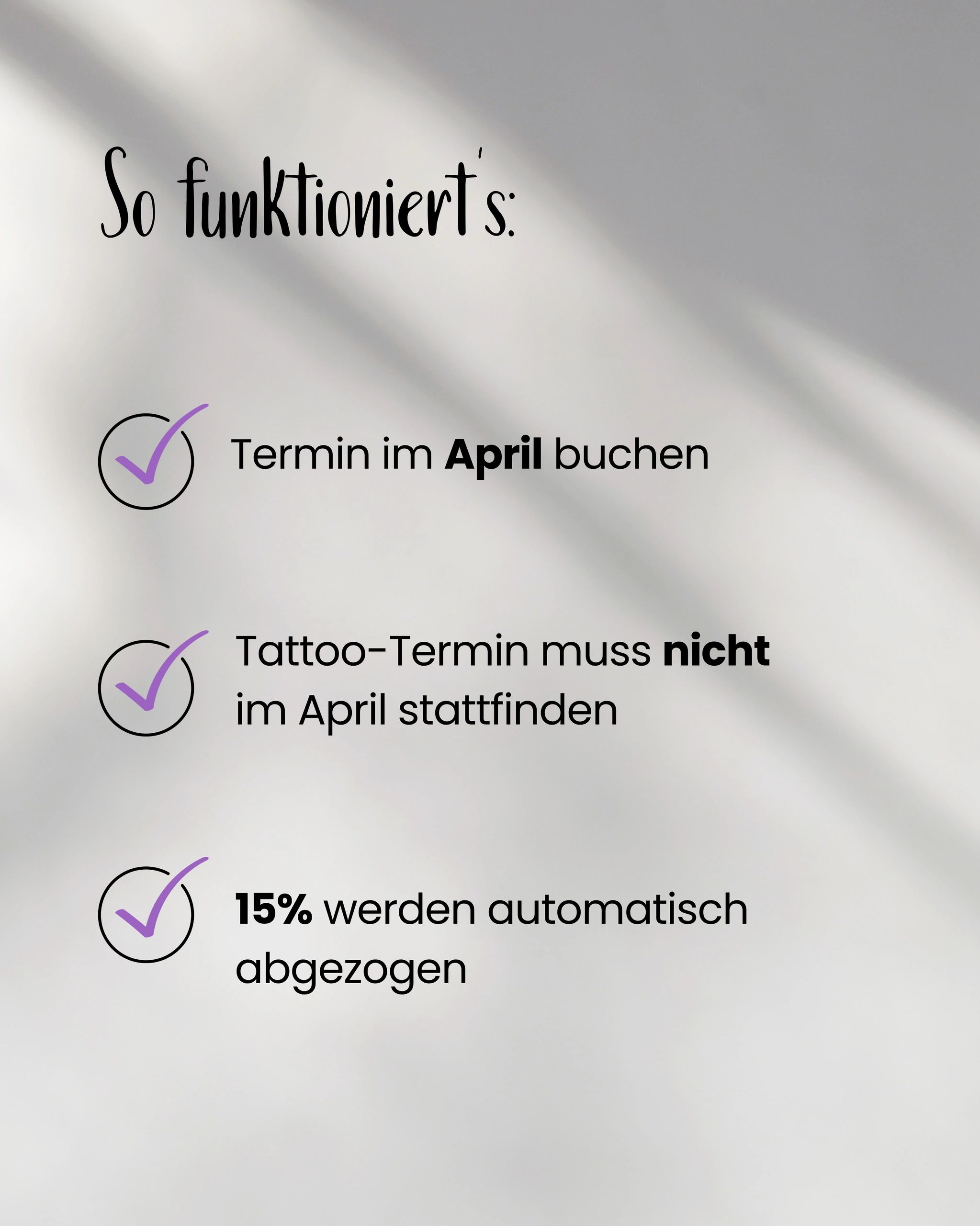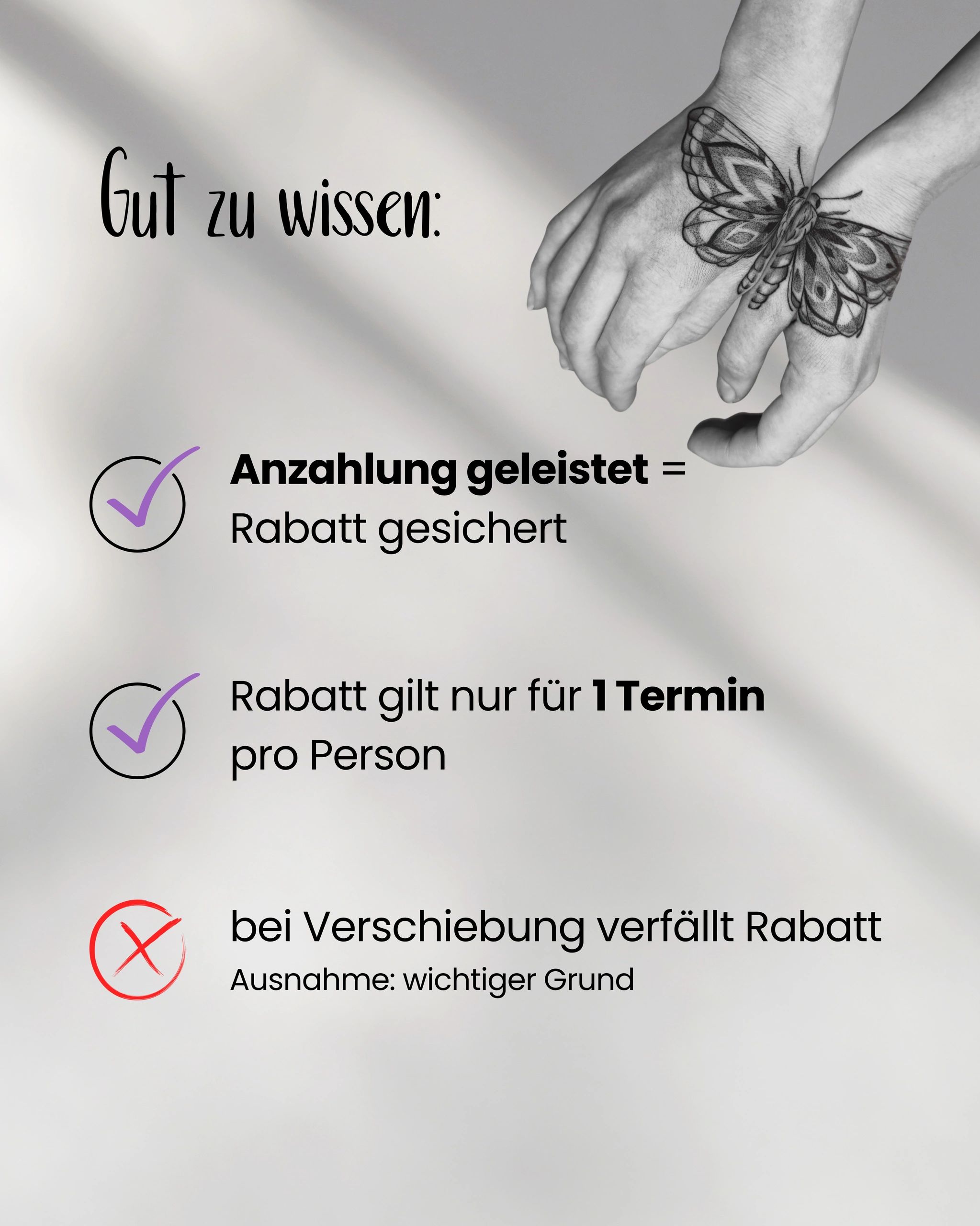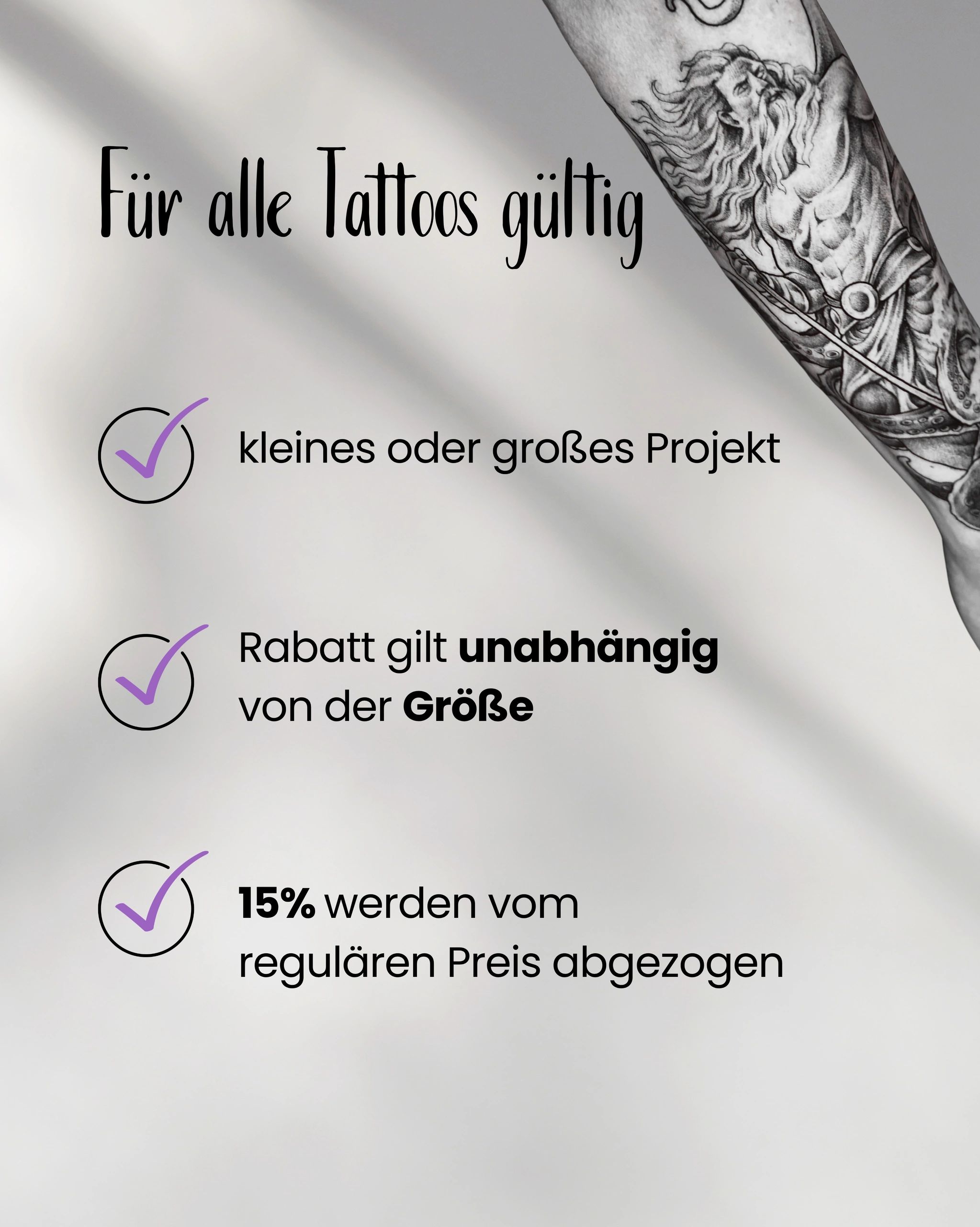15% Rabatt auf deinen nächsten Tattoo Termin